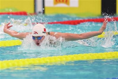 11月11日,十五运会游泳比赛在深圳进入第二个比赛日,江苏队张雨霏在女子100米蝶泳决赛中以56秒88的成绩斩获冠军。