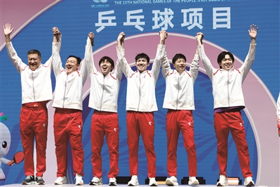 11月20日,由马龙、王楚钦、黄友政组成的北京队在十五运会乒乓球男团决赛中以3比1战胜樊振东、许昕、周恺出战的上海队。这是北京队时隔32年再次在全运会男团比赛中登顶,37岁的马龙六战全运会,拿到个人全运会第五金。
