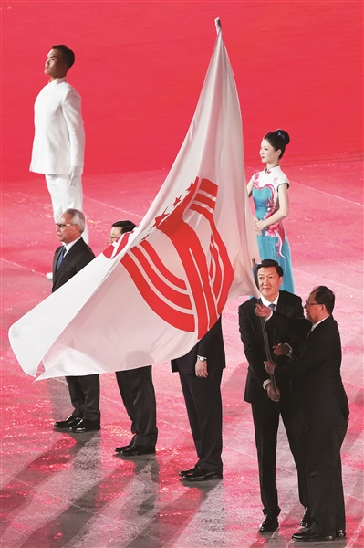 闭幕式上,孟凡利、李家超、岑浩辉将全运会会旗交还给高志丹,高志丹将会旗移交给第十六届全运会承办地代表、湖南省省长毛伟明。第十六届全运会将于2029年在湖南举办。