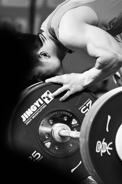 抓举第三次试举失败,挺举两次冲击189公斤失败后,他俯身亲吻杠铃片,用这个深情的动作,告别自己热爱的举重赛场。