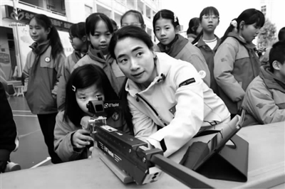 捐赠仪式后,趣味互动环节让操场变成欢乐的海洋。射击体验区前排起长队,李雪艳指导孩子们操作模拟设备,手把手传授技巧。“冠军姐姐说,射击要专注呼吸,我好像找到了感觉!”一名学生兴奋地说。体育竞技区同样热闹非凡。乒乓球托球接力、障碍运球等游戏考验团队协作,趣味拔河比赛引来阵阵加油声。文艺展示区融合客家文化,孩子们在非遗传承人指导下体验剪纸和木活字印刷,感受传统技艺魅力。