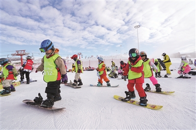 小朋友练习单板滑雪。  新华社记者 阿曼摄