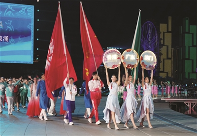 广东省体育代表团、香港特别行政区体育代表团和澳门特别行政区体育代表团代表在闭幕式入场仪式上共同入场。