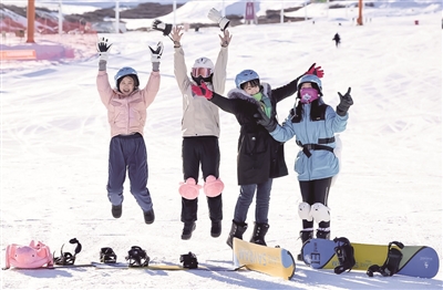 | 在内蒙古乌兰察布市大河湾滑雪场,众多爱好者享受滑雪的乐趣。 |
