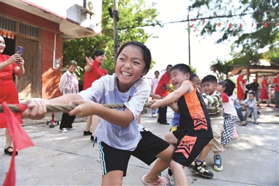 小朋友们在进行拔河比赛。新华社记者 黄孝邦摄