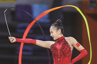 王子露在带操比赛中。 新华社记者 黄伟摄