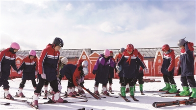 “雪假”期间,吉林市第二实验小学学生在吉林市纳美山谷度假区学习滑雪。