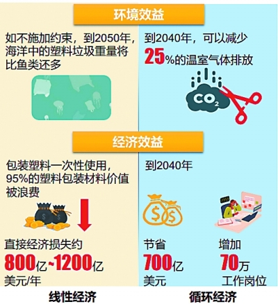据联合国环境规划署保守估计,在全球范围内塑料包装低效循环的环境成本大概是400亿美元,塑料包装材料的价值约有95%因为一次性使用而浪费,每年将造成800亿~1200亿美元直接经济损失。