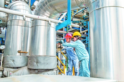 扬子石化定期开展各类安全演练,通过劳模小课堂、现场找碴儿等方式,着力提升员工隐患排查能力和操作本领,护航企业安全生产。图为近日炼油厂员工查看装置运行情况。李树鹏 摄 靳佳伦 文
