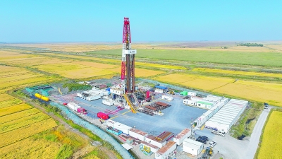 东北油气分公司持续深化“一井一策”井身结构设计,迭代优化工艺技术,科学优化“一趟钻”参数配置,钻井提速提效显著。今年前三季度,完钻新井36口,进尺量达17.4万米,同比增长3.4%,钻井周期同比缩短9.06%,钻井投资下降12.92%,钻井“四提”指标高效完成。图为近日东北油气分公司位于黑龙江松北新区的新胜3井进行钻井施工。张 凯 摄