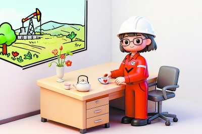 南疆的戈壁滩,风裹细沙。西北油田工程服务中心202办公室里,靠窗工位的亮丽鲜活,打破了办公区域的单调。