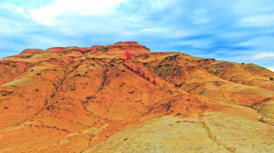 工区一处雅丹地貌前,技术人员为可控震源车规划设计施工区域。