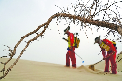 老仝说:“那么些人住在里头,那么多设备和生产物资,都是国家的钱买的,马虎不得。” 老董说:“不敢随便放人进去,携带火种咋整,出了事可咋整,那些好不容易才活下来的胡杨树……生态太脆弱了。”