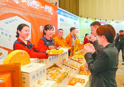 近日,江西石油举办2025年赣南脐橙暨特色商品推介会,集中展示推介“易甄选”赣南脐橙、“易享橙”橙汁等特色商品,现场与16家客户企业签约。江西石油持续深化产业帮扶,运用易捷“线上+线下”渠道,为赣南脐橙、会昌橘柚等特色产品提供“一站式”服务,赣南脐橙累计销售额4000余万元。图为江西石油员工向客户推介赣南脐橙。张 曦 摄 曾林沁 梁惠雯 文