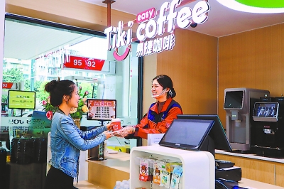 客户在四川石油黄荆沟加能站购买易捷咖啡。 温淄苡 摄