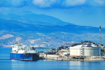 11月17日,LNG运输船在雅典附近雷维苏萨码头卸载埃及LNG。埃及出口LNG旨在巩固区域能源贸易枢纽地位。视觉中国 供图