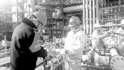 临近岁末,金陵石化从严推进重点领域安全监管工作。在作业现场,该公司持续保持安全生产高压严管态势,严格落实人员作业全程受控、票证审批升级管控要求,充分发挥现场监管效能,全力筑牢冬季安全生产防线。图为12月18日,该公司消防保卫支队人员在现场检查安全设备情况。曾 敏 摄
