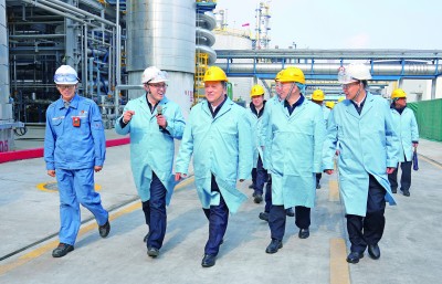 2月1日,侯启军在镇海炼化装置现场调研。杨楚雄 摄