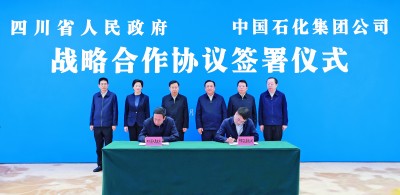 本报讯 记者赵士振报道:2月5日,中国石化与四川省人民政府在成都签署战略合作协议。集团公司党组书记、董事长侯启军与四川省委书记、省人大常委会主任王晓晖,省委副书记、省长施小琳会谈并共同见证协议签署。