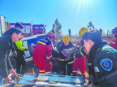 2月17日,华北油气分公司采服中心消防救援大队接到车祸紧急求助后,快速调集人员和车辆奔赴现场,成功解救3名被困人员,用实际行动守护人民群众生命财产安全。高建珍 摄