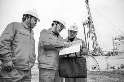 3月3日,华东油气分公司安全管理人员深入钻井作业现场,为复工钻井队负责人开展安全生产专题宣贯,将集团公司最新安全要求精准传递到一线,以“零容忍”态度筑牢安全防线。此次宣贯进一步强化了钻井队负责人的安全红线意识和责任意识。图为安全管理人员(中)在仓西3-13井侧钻平台进行安全生产专题宣贯。