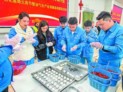 项目部员工一起包汤圆。
