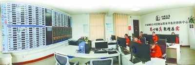 经纬公司中原测控公司慧聚远程录井监控指挥中心工作人员在跟踪各井实时动态。王 鹏 摄