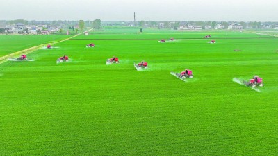 ▲中原大地,万象“耕”新。河南南阳石油为行进中的农用机备足油品,为春耕添动能。姜明武 摄