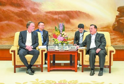 3月13日,集团公司董事长侯启军在总部会见英力士集团创始人兼董事会主席拉特克里夫爵士,双方就相关领域合作交换了意见。集团公司副总经理万涛参加会见。图为会见现场。