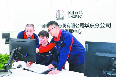 销售华东员工通过视频监控系统对油库现场作业进行巡查。