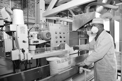 今年以来,沧州炼化抢抓食品级硫黄市场行情向好机遇,通过采取工艺生产优化、提高设备运行平稳率等措施,增产增销食品级硫黄。前两个月,食品级硫黄产量同比增长10.92%。图为员工进行食品级硫黄包装。张玉香 摄