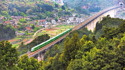 “复兴号”动车组列车运行在中老铁路中国段线路上(1月27日摄)。 2月1日记者从中国铁路昆明局集团有限公司获悉,中老铁路开通以来,“复兴号”“澜沧号”动车组运行安全、绿色、快捷、舒适,大幅缩短了沿线城市间的交通时间,受到两国民众青睐,截至2023年1月31日,累计开行旅客列车2万列,发送旅客1030万人次。 新华社发(徐章位 摄)