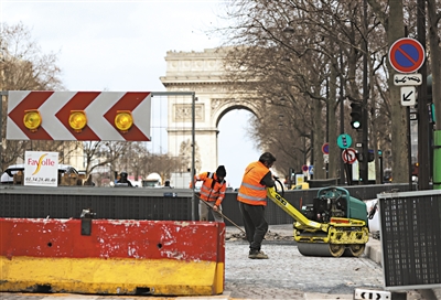 2月1日,工人在法国巴黎凯旋门附近修路。 法国国家统计和经济研究所1月31日发布初步数据显示,法国经济2022年第四季度环比增长0.1%,全年增长2.6%。 新华社记者 高静 摄