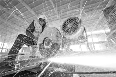 2月5日,在中建三局三公司承建的湖北省孝感楚能新能源项目工地,工人在切割角钢。 当日是元宵节,各行各业的许多劳动者们仍坚守在岗位上。不少地方还开展丰富多彩的慰问、联欢等活动,共度佳节。 新华社记者 伍志尊 摄