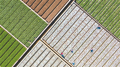 2月9日,在云南省玉溪市通海县秀山街道,农民在田间劳作(无人机照片)。早春时节,各地农民抢抓农时积极开展农业生产,田间地头一派人勤春早的繁忙景象。 新华社记者 胡超 摄
