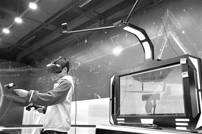 2月12日,游客在冰雪元宇宙体验中心体验虚拟现实(VR)滑雪。日前,哈尔滨冰雪大世界园区内的冰雪元宇宙体验中心成为热门“打卡”地。新华社记者 张涛 摄