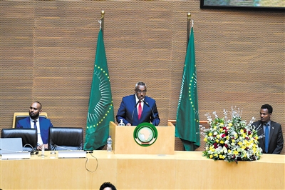 2月15日,在埃塞俄比亚亚的斯亚贝巴,埃塞俄比亚副总理兼外长德梅克(中)在非洲联盟(非盟)执行理事会第42届常务会议开幕式上发表讲话。会议呼吁非洲国家加大力度推动非洲大陆一体化,齐心协力实现非洲的发展宏愿。 新华社发(迈克尔·特韦尔德 摄)