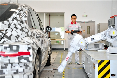 | 在位于天津的中汽中心新能源汽车科技创新基地充电技术部,工作人员操纵设备测试新能源汽车无线充电辅助性能。该基地共建设11.6万平方米的综合试验楼,配套超过1000台套测试设备,主要围绕燃料电池、动力电池、电驱电控、充电技术、电磁兼容、新能源整车等六大领域,测试能力覆盖新能源乘用车、商用车整车和其他相关部件。新华社记者 孙凡越 摄 |
