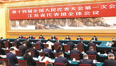 在认真听取大家发言后,习近平作了发言。他首先表示赞成政府工作报告,充分肯定江苏五年来经济社会发展和党的建设各方面取得的成就,希望江苏继续真抓实干、奋发进取,在高质量发展上继续走在前列,为谱写“强富美高”新江苏现代化建设新篇章实现良好开局,为全国大局作出新的更大贡献。