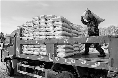 在黑龙江省供销合作社下属企业黑龙江倍丰农业生产资料集团有限公司百丰有限公司厂区内,一辆满载化肥的大货车往来不息,各类化肥整齐堆放,工人们正忙碌地卸车、搬运,为即将到来的春耕做准备。