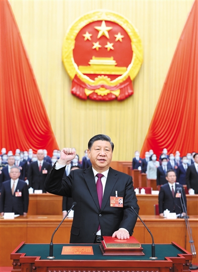 上午9时,十四届全国人大一次会议第三次全体会议在人民大会堂举行。