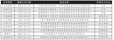 多家上市公司日前披露了其参设产业基金的动向或最新进展情况。万朗磁塑、同兴环保3月9日相继公告称,两公司拟作为有限合伙人与普通合伙人上海十月资产管理有限公司及其他有限合伙人于近日签署了《安徽国控十月新兴产业股权投资合伙企业(有限合伙)合伙协议》,共同设立安徽国控十月新兴产业股权投资合伙企业(有限合伙)(以下简称“合伙企业”)。合伙企业的总认缴出资额为10亿元,其中,同兴环保认缴出资1亿元,出资比例为10.00%;万朗磁塑拟以自有资金出资5000万元。