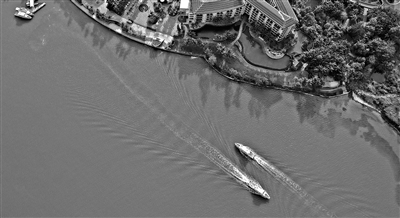 两艘游船在博鳌东屿岛旅游度假区相向而行(3月14日摄,无人机照片)。 早春时节,不少游客来到位于海南省琼海市博鳌镇的博鳌东屿岛旅游度假区游玩拍照,畅享春光。新华社记者 杨冠宇 摄