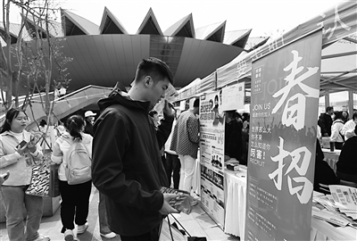 3月16日,一名求职者在云南师范大学呈贡主校区校园招聘会上查看招聘海报。 当日,云南省2023年公费师范生招聘会暨2023届师范类高校毕业生招聘会在位于昆明市的云南师范大学呈贡主校区举行,来自省内外共516家用人单位参会,提供就业岗位1.5万余个。新华社记者 陈欣波 摄