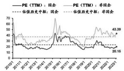 “2023年中央企业经营层面的任务目标要求净资产收益率、研发经费投入强度、全员劳动生产率、营业现金比率要实现进一步提升,对核心竞争力、研发投入的强调符合市场对于创新驱动发展的追求,提高了市场对于央、国企的基本面预期和政策面预期。”星石投资有关人士对《经济参考报》记者表示,目前地方国有企业、中央国有企业和民营企业的市净率中位数分别为1.86倍、2.22倍和2.83倍,央、国企的估值水平为价值重估提供空间,国企改革可能成为今年市场的重要主线之一。