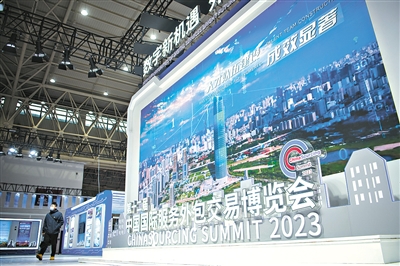 3月21日,观众在博览会展厅参观。当日,第十二届中国国际服务外包交易博览会在武汉开幕。本届博览会围绕“数字新机遇 外包新未来”主题,集展览展示、行业对话、商务交流于一体,全方位展示中国服务外包发展成就。博览会将持续至3月23日。新华社记者 伍志尊 摄