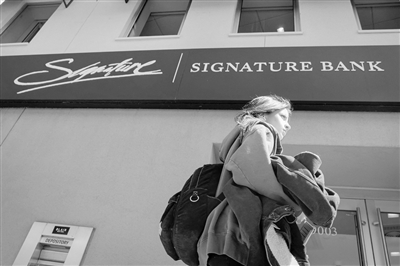 3月20日,行人经过美国纽约的一所签名银行。美国纽约社区银行20日宣布通过子公司旗星银行从美国联邦储蓄保险公司收购了签名银行部分资产,收购已获监管部门批准,相关交易已经完成。新华社/路透