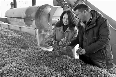 福建省连江县长龙镇一家制茶企业负责人在查看待加工的茶青(3月28日摄)。