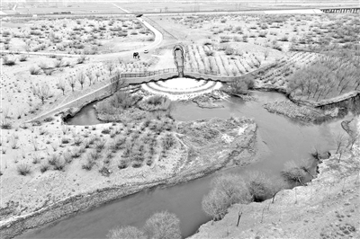 一条条输水渠道像动脉一样在大地上交织蔓延,助推黄河水经260余公里长途跋涉,汇入武威市民勤县境内的亚洲最大沙漠水库——红崖山水库。