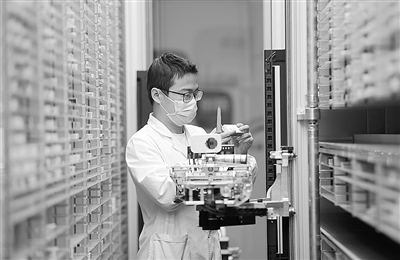 4月2日,浙江省湖州市德清县第三人民医院药师在智慧药房核对药品。新华社发(谢尚国 摄)